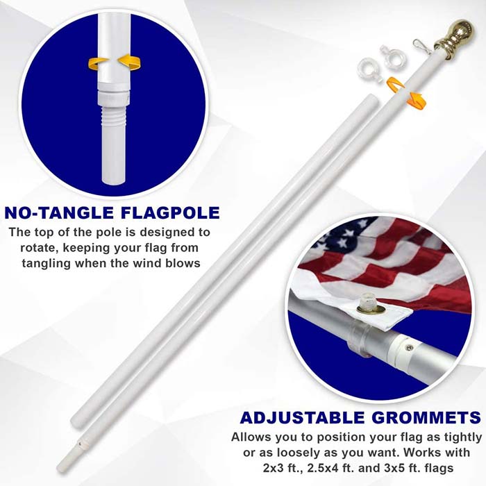 Our Best White Aluminum Spinning (Tangle Free, Multi-Use) White Flag Pole. Rust Proof! Wind Resistant! Guaranteed.