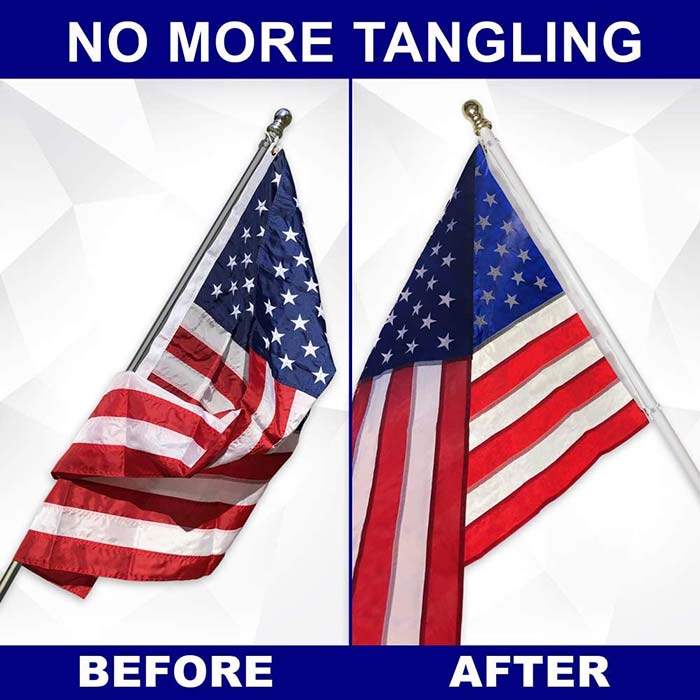 No longer suffer the frustration of your flag wrapping around your flag pole in the wind. Our tangle-free spinning flag pole will keep your flag flying high and proud. Check out the benefits of our durable flag pole below.