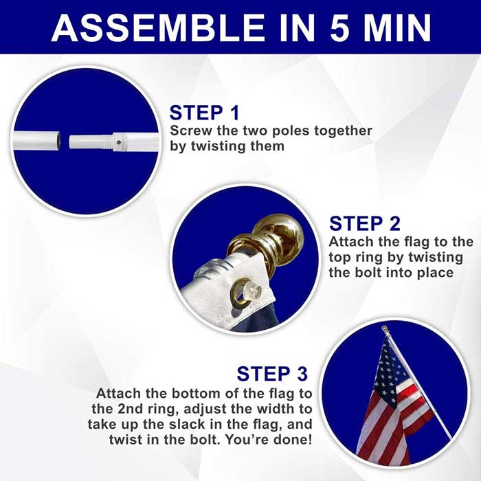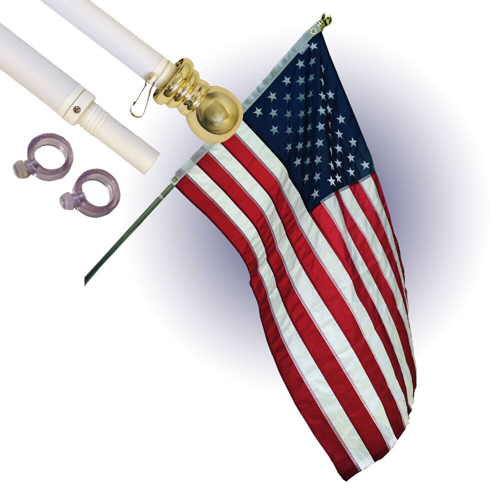 This beautiful white flag pole with gold ball comes with two flag fasteners for flying grommeted flags and a snap and swivel ring for sleeve flags. (Flag sold separately.) This serves as a perfect first time or replacement flag pole for residential home or commercial use.