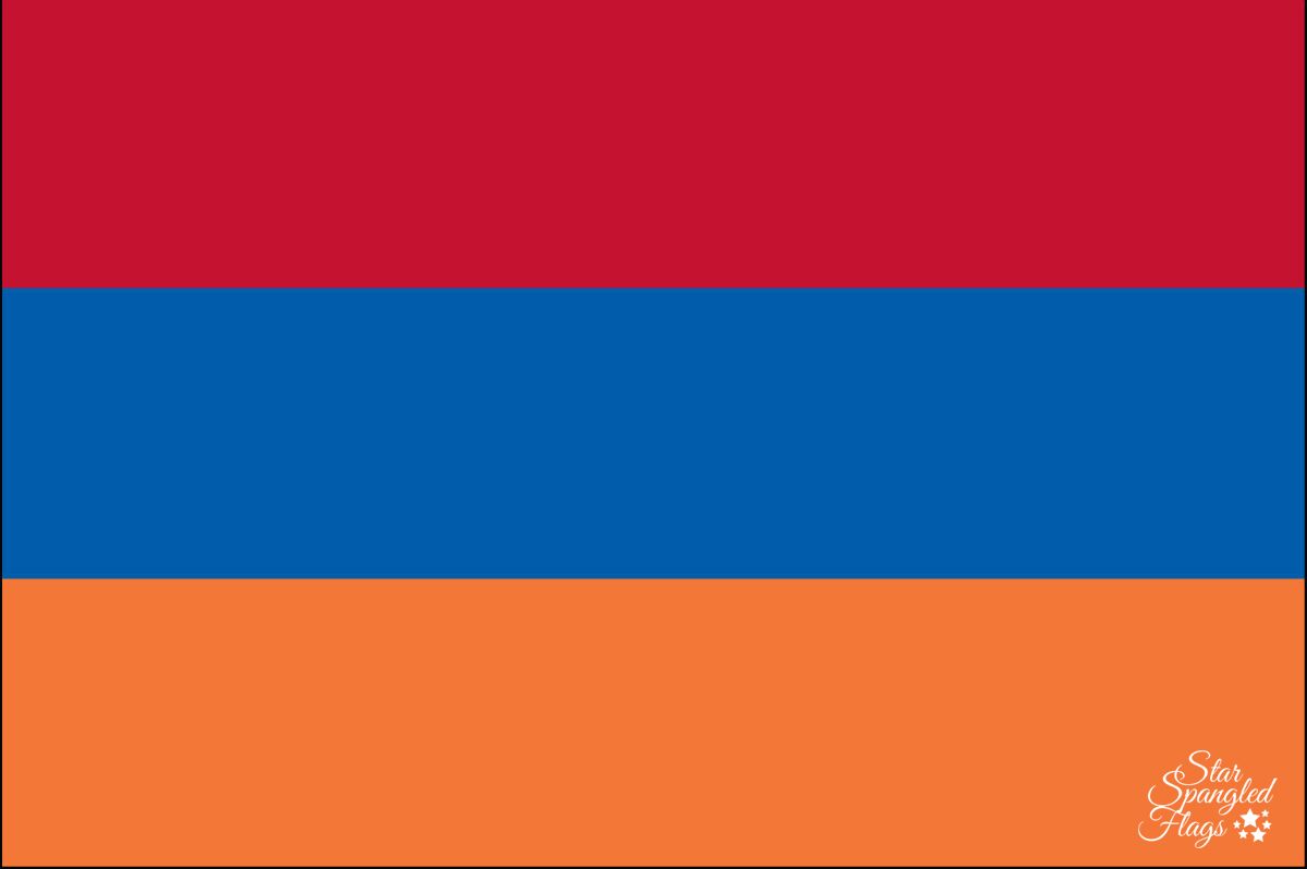 The symbolization of colors of the Armenia flag have two main interpretations. The first interpretation is the red stands for the blood of the 1.5 million Armenians killed in the Armenian Genocide during 1914-1923. Blue symbolizes the Armenian pure sky, and orange represents the nation’s courage. The second interpretation is taken from the Constitution of the Republic of Armenia which states: the red illustrates the Armenian Highland, the Armenian people’s continued struggle for survival, maintenance of the Christian faith, and Armenia’s independence and freedom; the blue represents the will of the people to live beneath peaceful skies, and orange denotes the hard working nature and creative talent of the Armenian citizens.